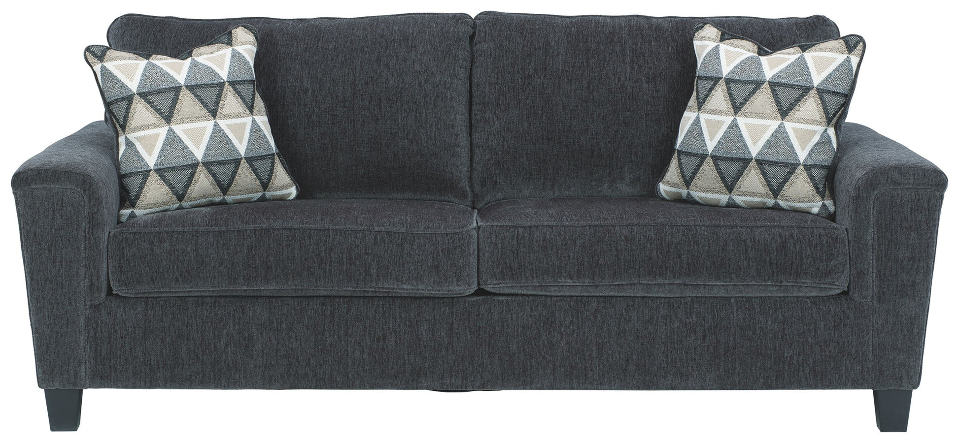 Covered in a chenille upholstery loaded with plush texture, this less-is-more contemporary sofa is dressed to impress with angled side profiling and track armrests wrapped with a layer of pillowy softness for that little something extra. Crisp and clean, the 2-over-2 cushion styling adds up to one sensational look. Rest assured, the memory foam queen mattress comfortably accommodates overnight guests.
