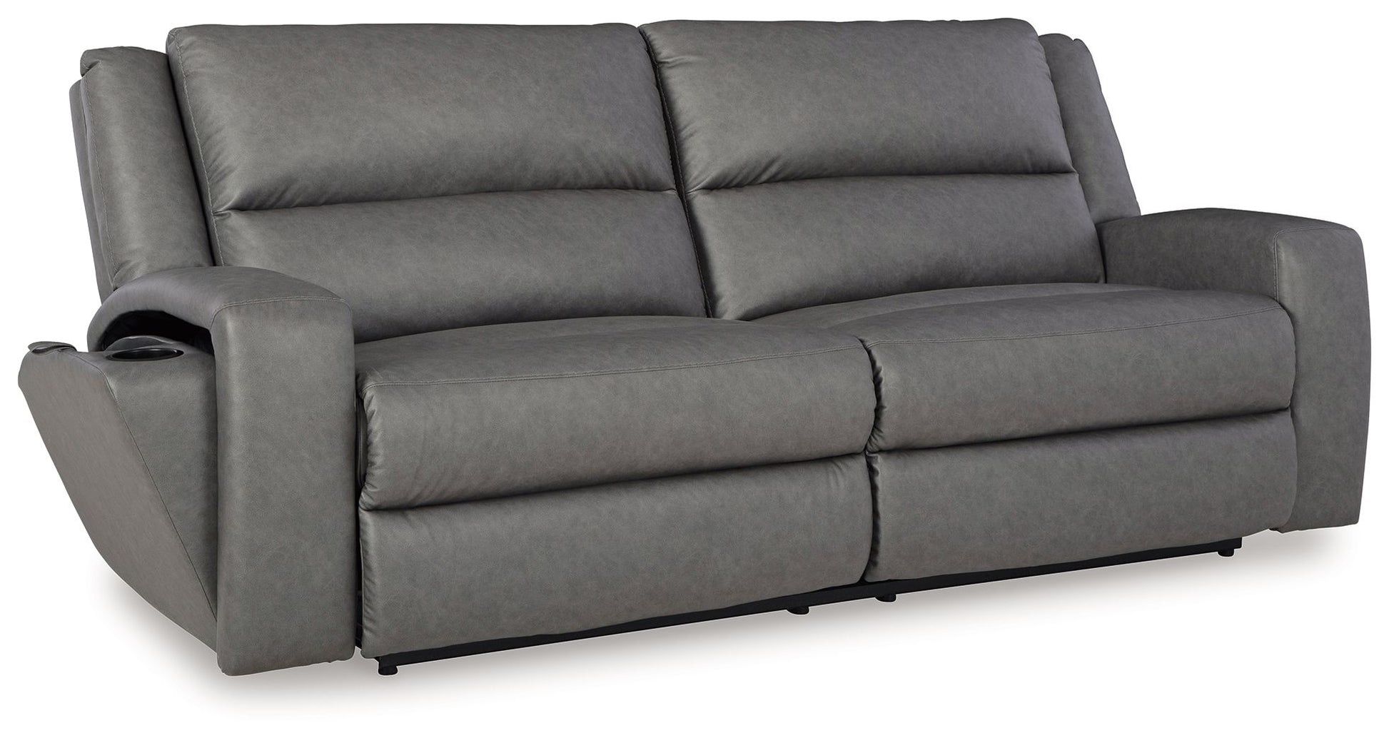 This reclining sofa appeals to your love for feature-filled furniture, all while maintaining a clean-lined and contemporary design. Pop-out storage and cup holders keep essentials close when you need them and tuck away easily when you don’t. Time to recline? A subtly placed handle extends the footrest with a simple pull. The sleekest of seating options, this sofa expertly balances form and function.