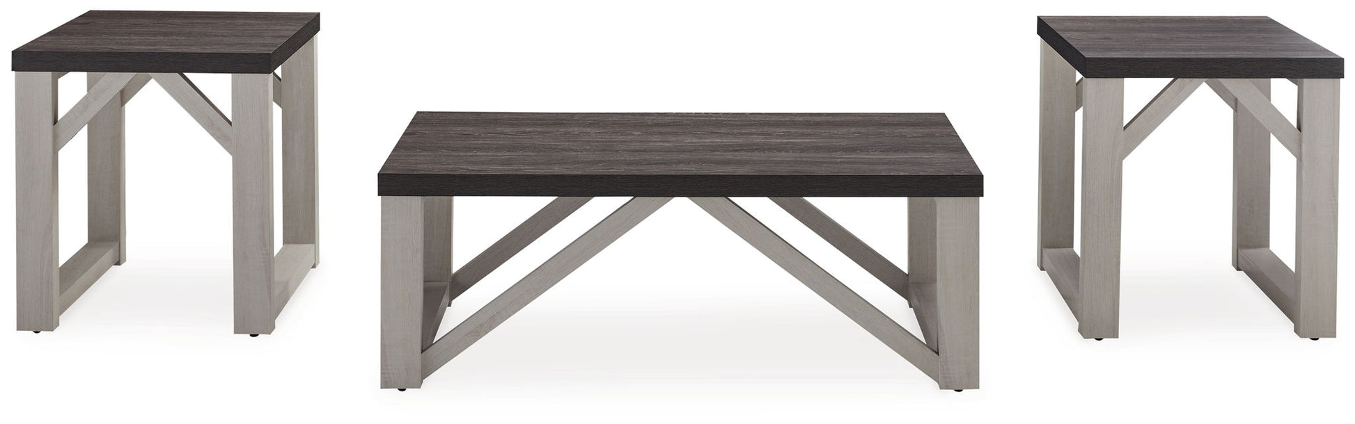 With an antiqued finish, plank-effect styling and an angled brace design, the Dorrinson table set is sure to elevate the look and feel of a room. Whether you embrace cottage chic or fancy modern farmhouse decor, these tables will look right at home flanking a sofa or chair.