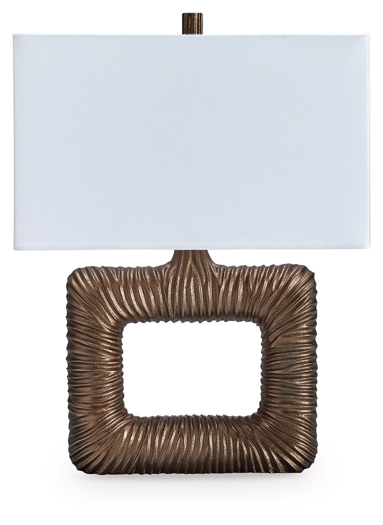 It’s hip to be square, thanks to this table lamp. A striking blend of art and lighting, its contemporary design and refined aesthetic are enhanced by sculptural elegance and an antiqued brass-tone finish. What a sophisticated way to light up your life.