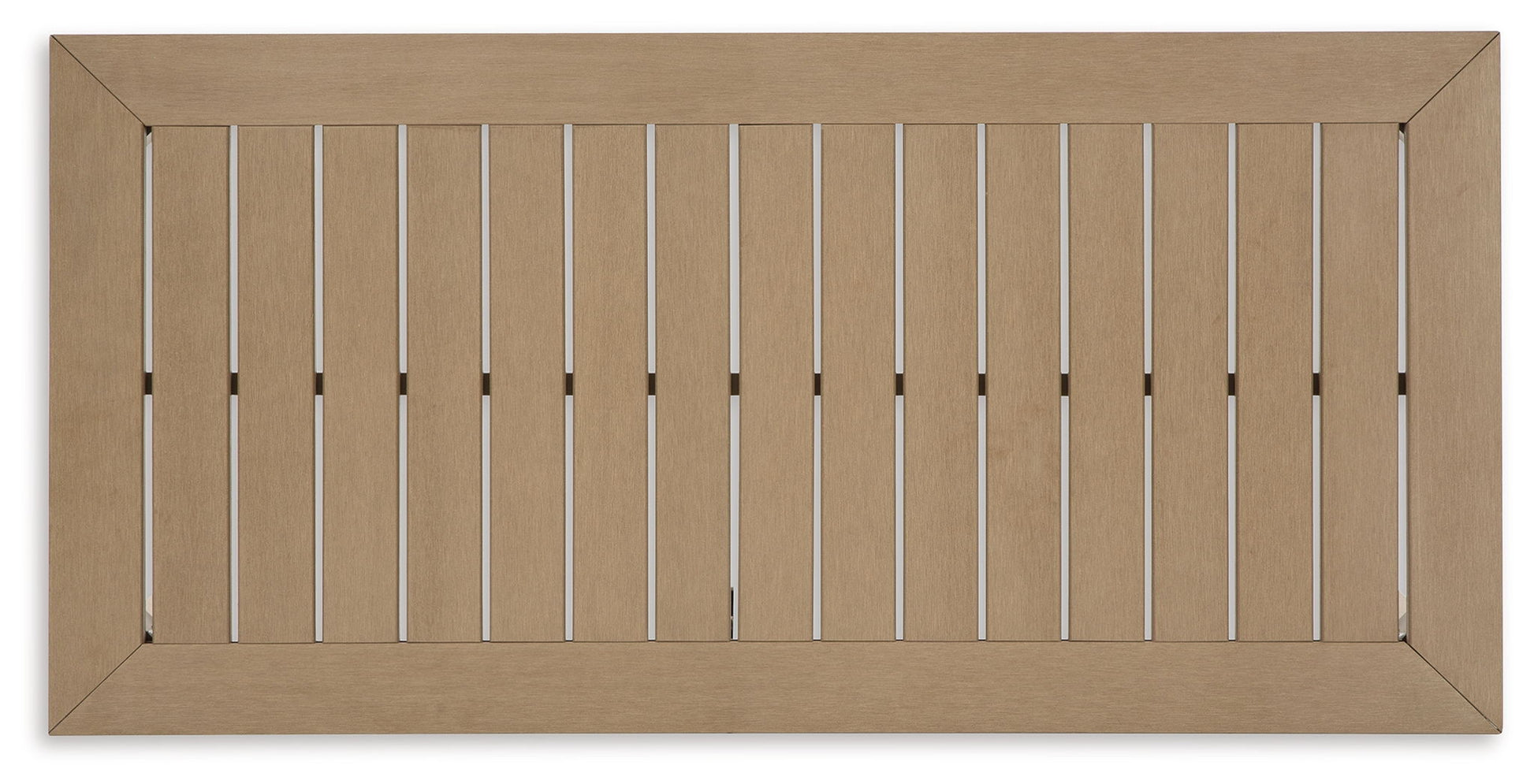 This coffee table is a beautiful addition to any outdoor living space. Effortless in its simplicity, this piece echoes your easygoing sensibilities. Combining durable, cutting-edge engineered materials, its Weatherwood construction in a blond wood color enhances the contemporary design. Pair this table with the matching sofa and chairs for a spectacular backyard or patio seating arrangement.