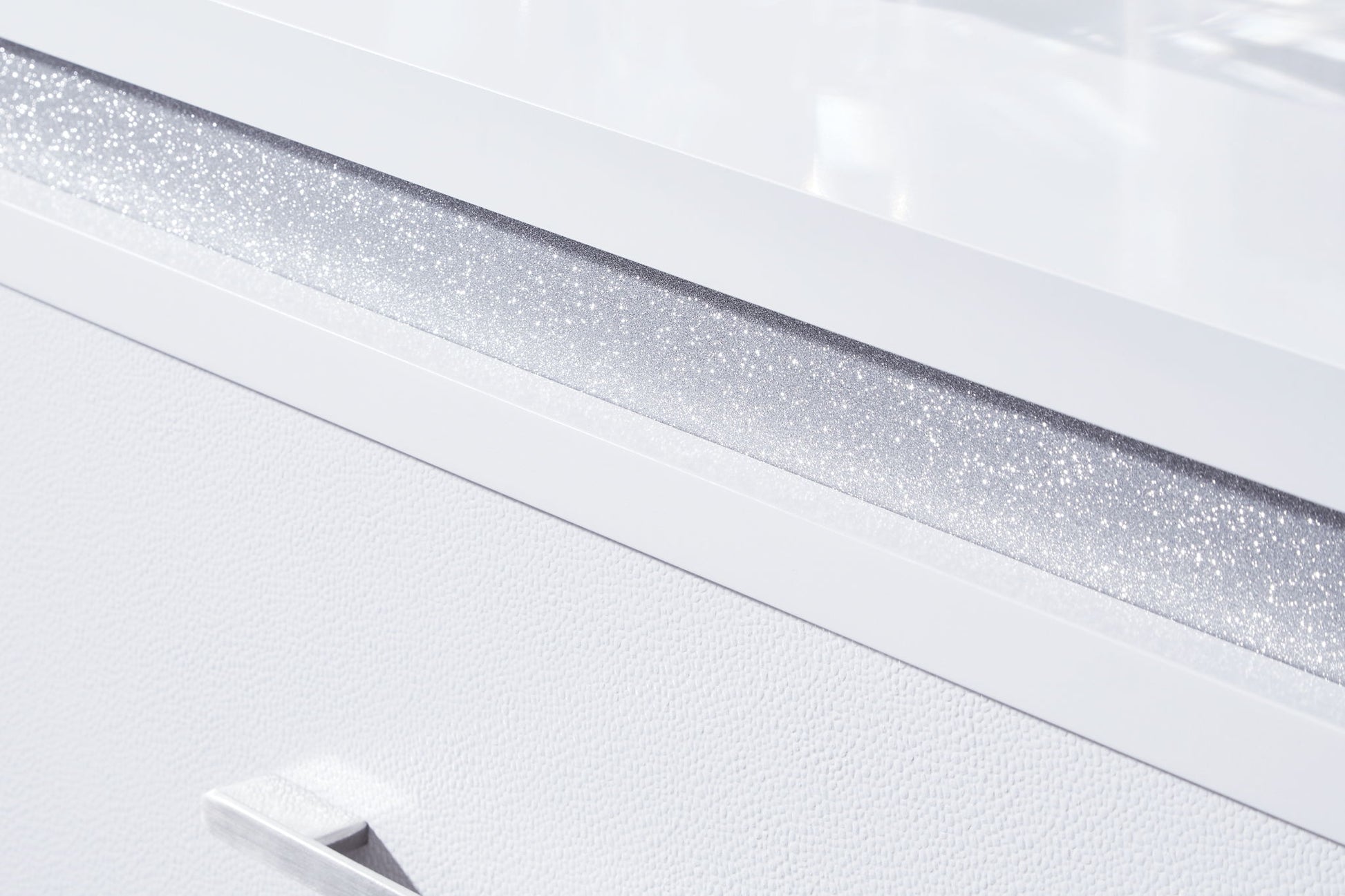 This chest of drawers is a showstopper, bringing a touch of modern glamour to your sanctuary. A sleek white finish and inset glitter accents create a sophisticated feel, while spacious drawers provide practical storage. It’s a simply stunning way to achieve the bedroom of your dreams.