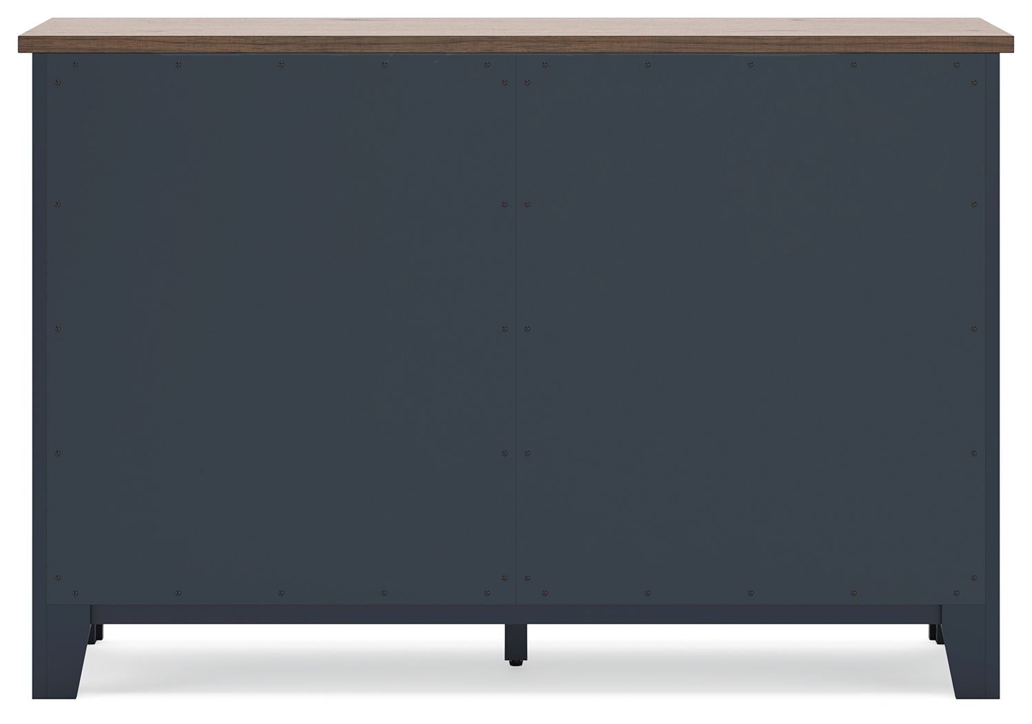 Add homespun charm to your restful retreat. A modern take on a timeless silhouette, this dresser pairs a dark slate blue finish with a light brown top. Drawer fronts and legs in a classic Shaker style bring an air of beautiful simplicity to the bedroom. Whether it's part of a charmingly curated guest suite or a casually carefree kids room, this dresser is a welcome addition.