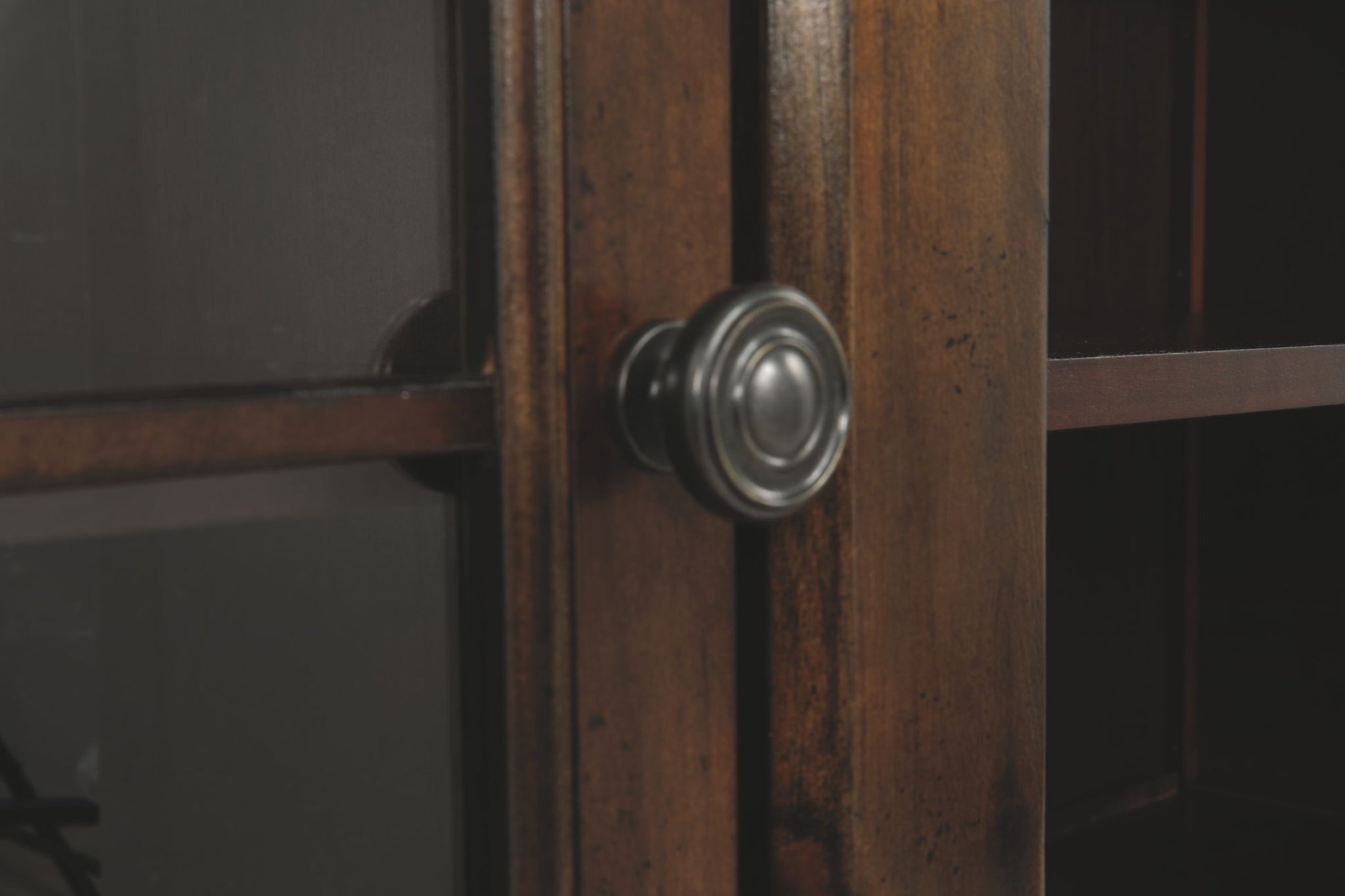 The beauty of this TV stand will immediately engage you. The slight breakfront shape is a rare find and an ideal fit among traditional and eclectic tastes. Soft black undertones highlight the warm finish. Multiple cubbies and glass-door enclosed shelves organize your audio/video components and plenty of extras. Sold separately, an electric fireplace fits neatly in the center cubby.