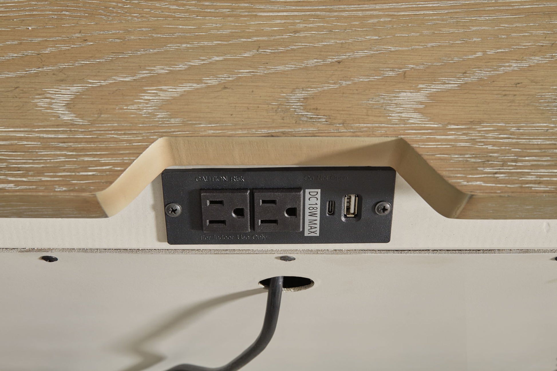 - 110V power supply with USB-A and USB-C charging ports
