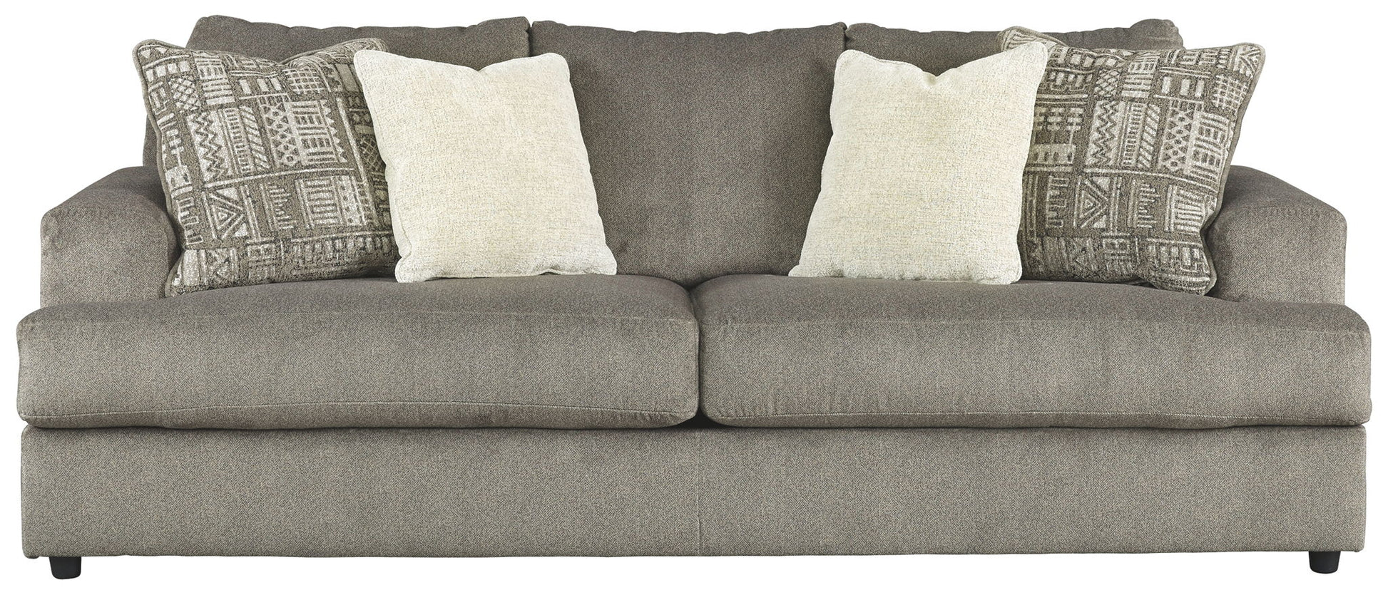 Flaunting a trendsetting silhouette, this sofa puts the contemporary in your contemporary home. Its three over two profile eliminates the center seat cushion, giving you elongated plushness and deep seating. Accented with soft jacquard chenille throw pillows for a splash of geometric pattern and color contrast.