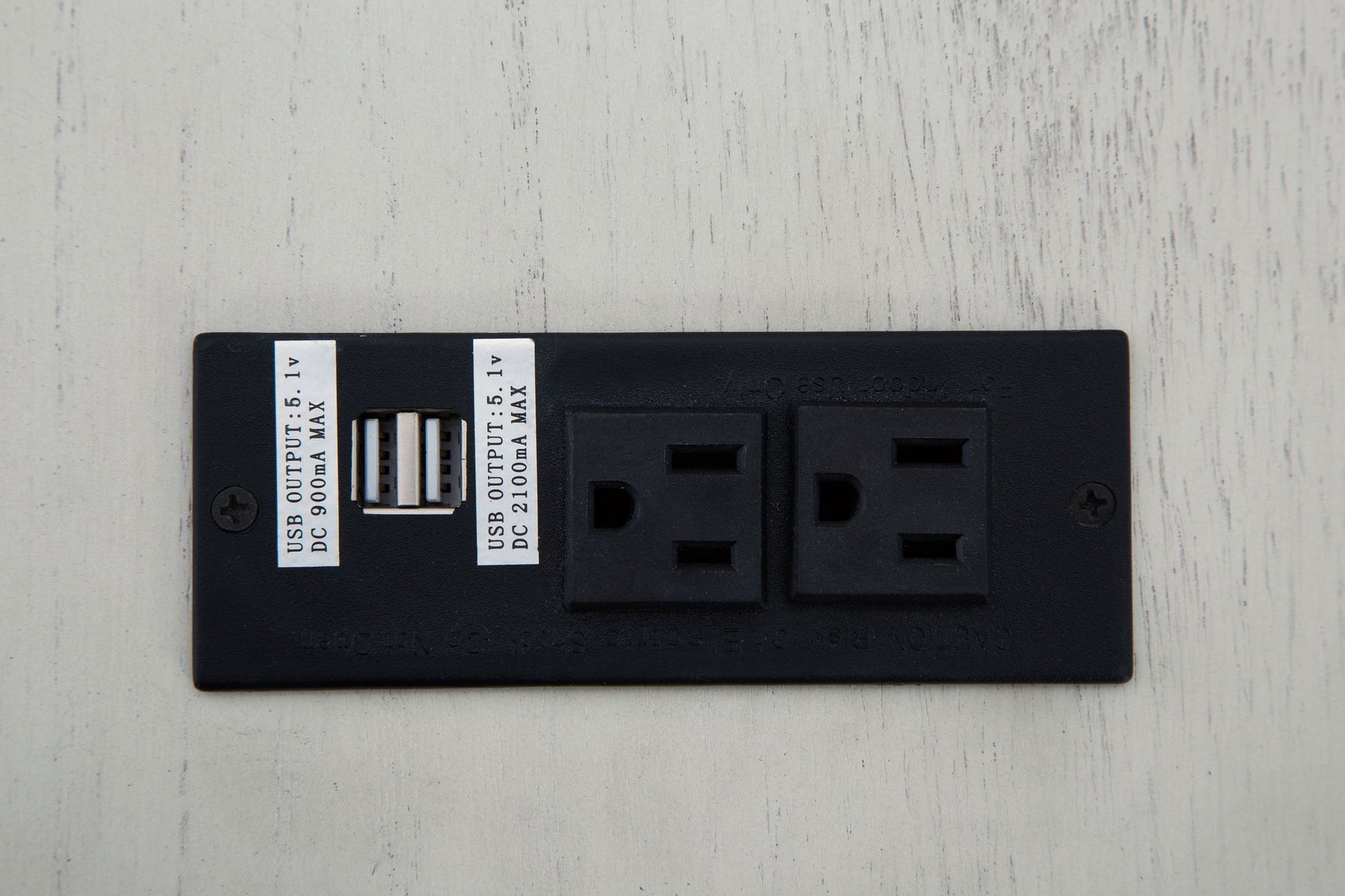 Add big character to a small space with this chairside end table. With its compact size and strong silhouette, it can go anywhere and blend easily into the decor. Less is so much more with the Shaker-inspired design and whitewashed wood grain finish. Loaded with form and function, this end table displays accent pieces and stores essentials securely while keeping devices powered up.